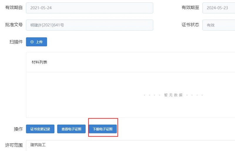 根据住建部及省住建厅相关工作要求,男人天堂 于近日完成了对建筑施工企业安全生产许可证电子证照的国标改造工作。2023年7月1日起,我市全面启用建筑施工企业安全生产许可证国标电子证照,主管部门审批后,无需再颁发纸质证书,企业端即可自行打印电子证书。