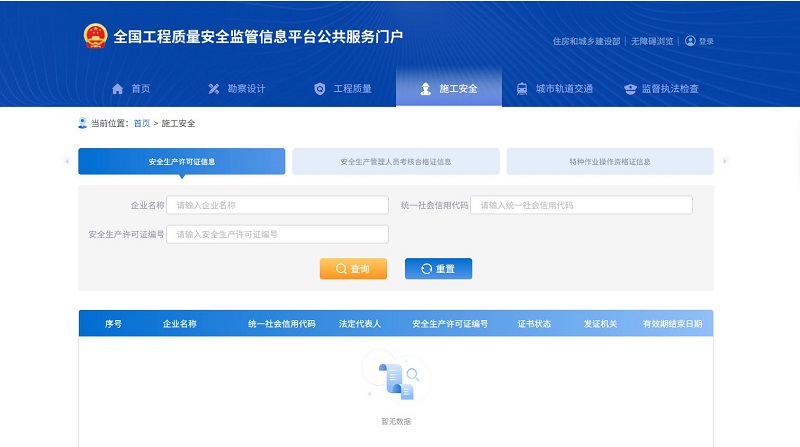 办事群众可登录住建部“全国工程质量安全监管信息平台公共服务门户”查看企业的安全生产许可证信息。